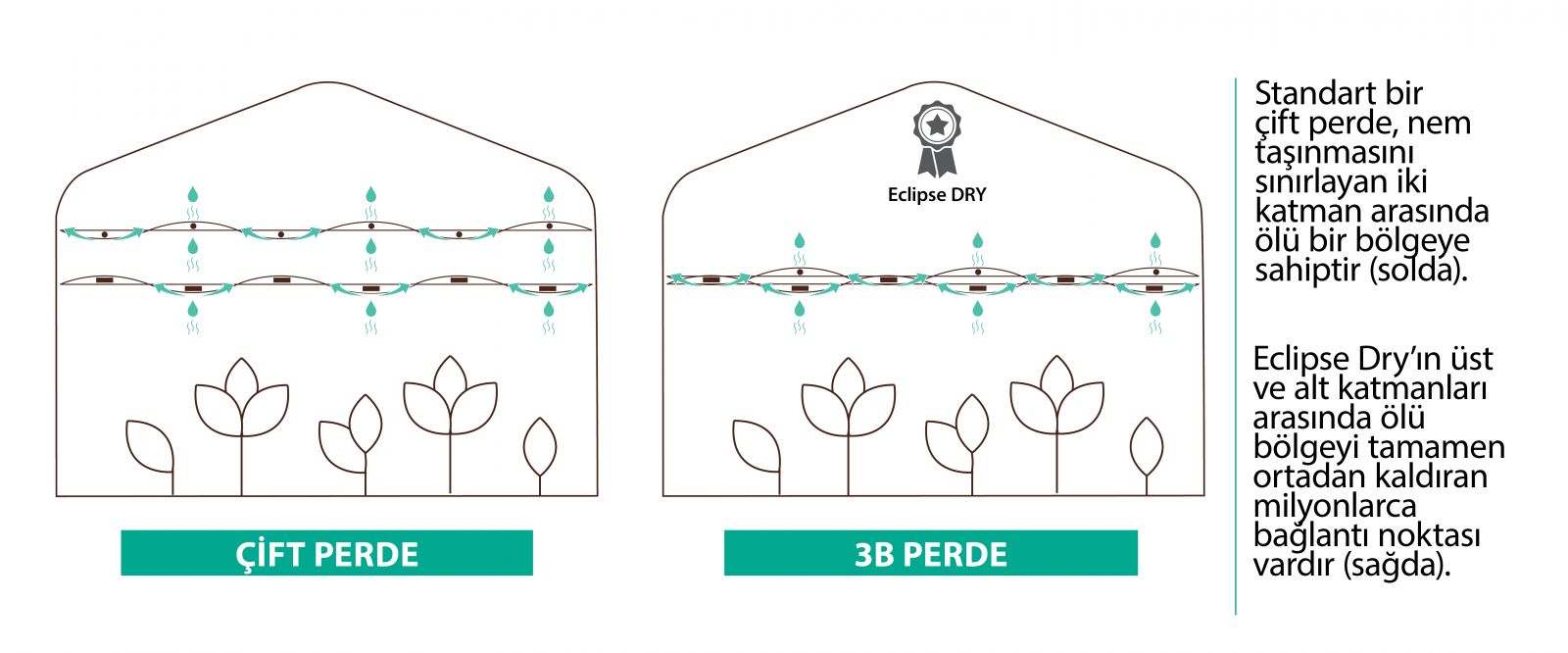 • PhormiTex Eclipse Dry + White: Yüksek karartma kapasitesi + aktif nem taşıma + ışık yansıması.
